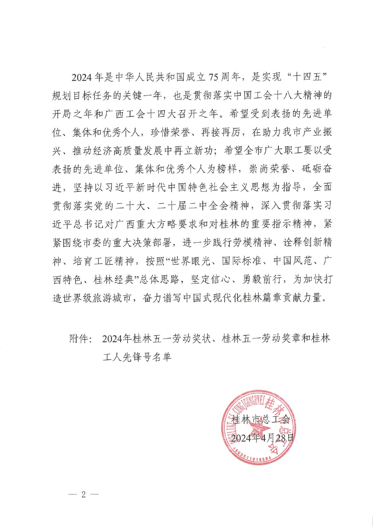 為表揚先進、樹立榜樣。近日,桂林市總工會發(fā)文關(guān)于表揚2024年桂林五一勞動獎和桂林工人先鋒號的通報,決定授予唐義廷等49名職工桂林五一勞動獎?wù)隆?